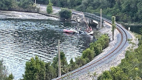 Navegando por la orilla del río se acercaron mucho a una línea de alta tensión y la electricidad se condujo por el mástil: